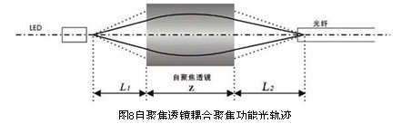 In Figure 8, L1 is the distance from the light source or fiber to the end face of the self-focusing lens, Z is the length of the self-focusing lens, and L2 is the distance from the end face of the self-focusing lens to the fiber. In order to enable the light emitted by the light source or optical fiber to be effectively coupled into the optical fiber after being focused by the self-focusing lens, the distance between L1 and L2 needs to be adjusted to achieve the best coupling efficiency. However, in the actual coupling process, the coupling efficiency is smaller than its theoretical value. The reason is that the coupling efficiency is directly related to the structure and use of the device.